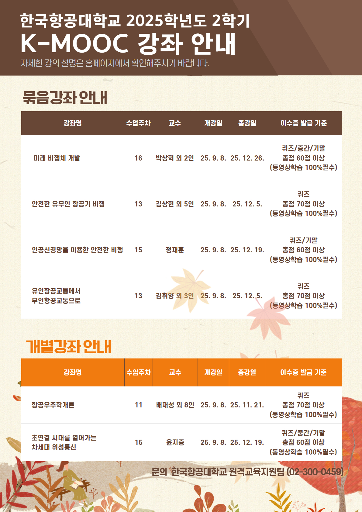 - 한국항공대학교 2025년 2학기 K-MOOC 강좌 수강 안내