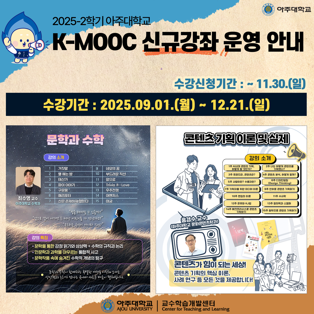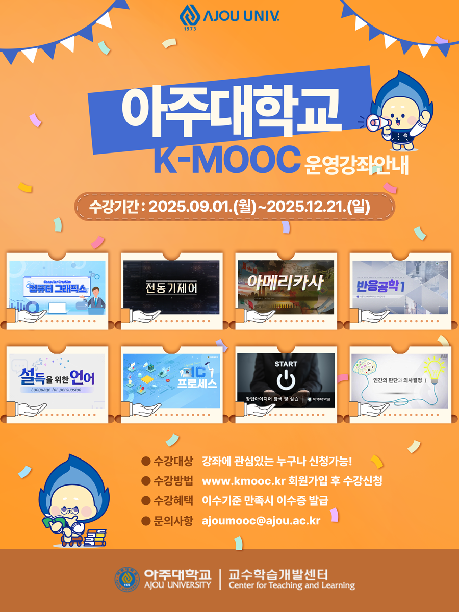 - 아주대학교 2025년 2학기 K-MOOC 강좌 수강 안내