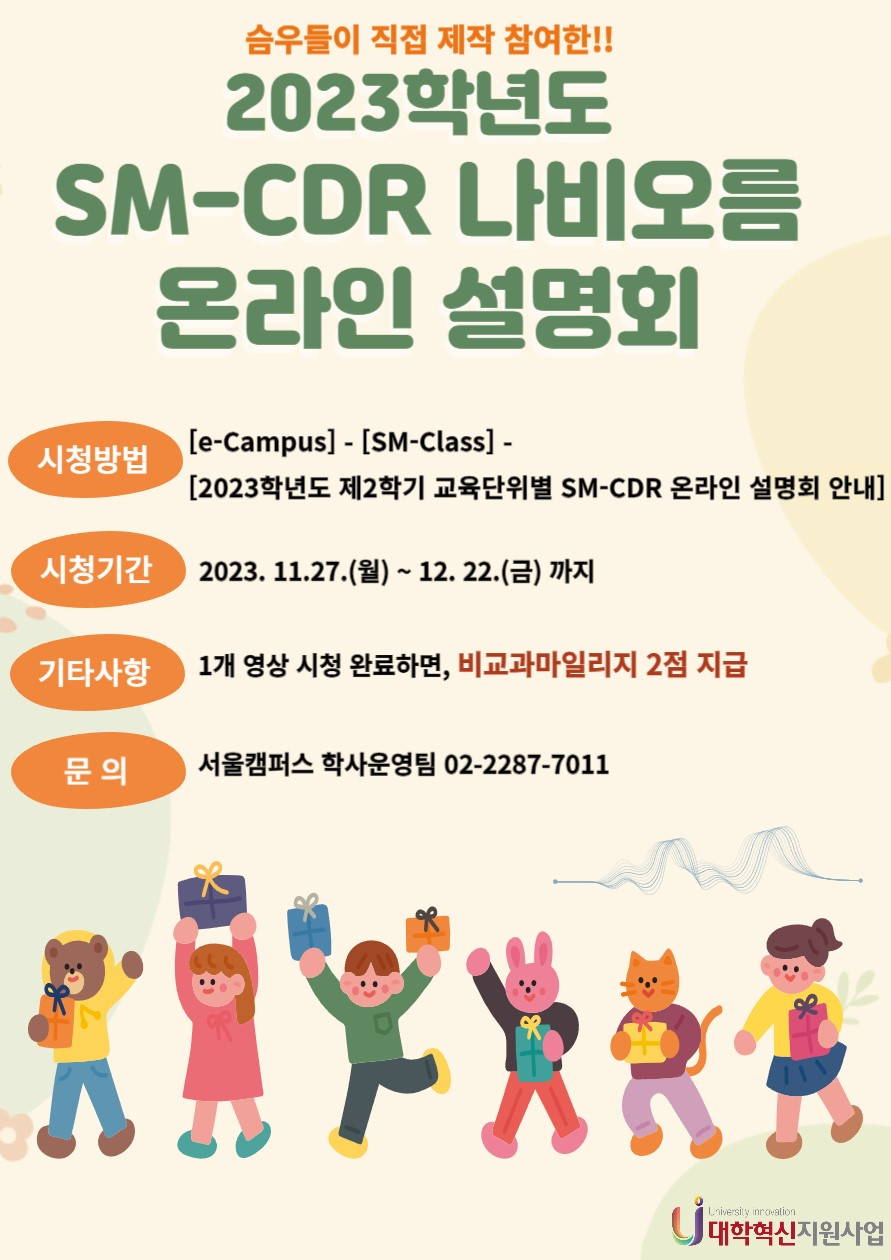 - [학사] 2023학년도 2학기 교육단위별 SM-CDR 온라인 설명회